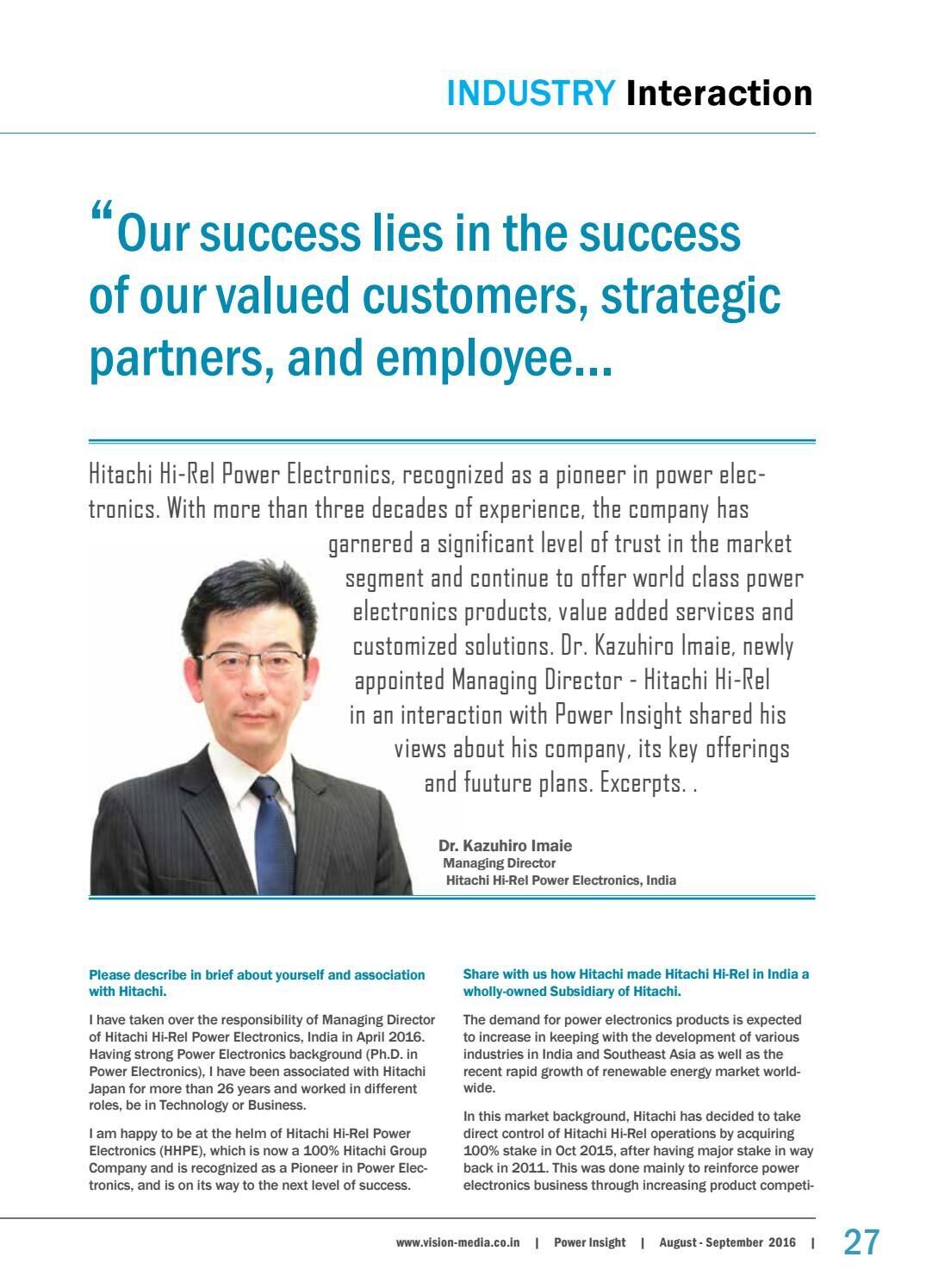 Interview of Dr. Kazuhiro Imaie (Managing Director) in Power Insight August-September 2016 Issue