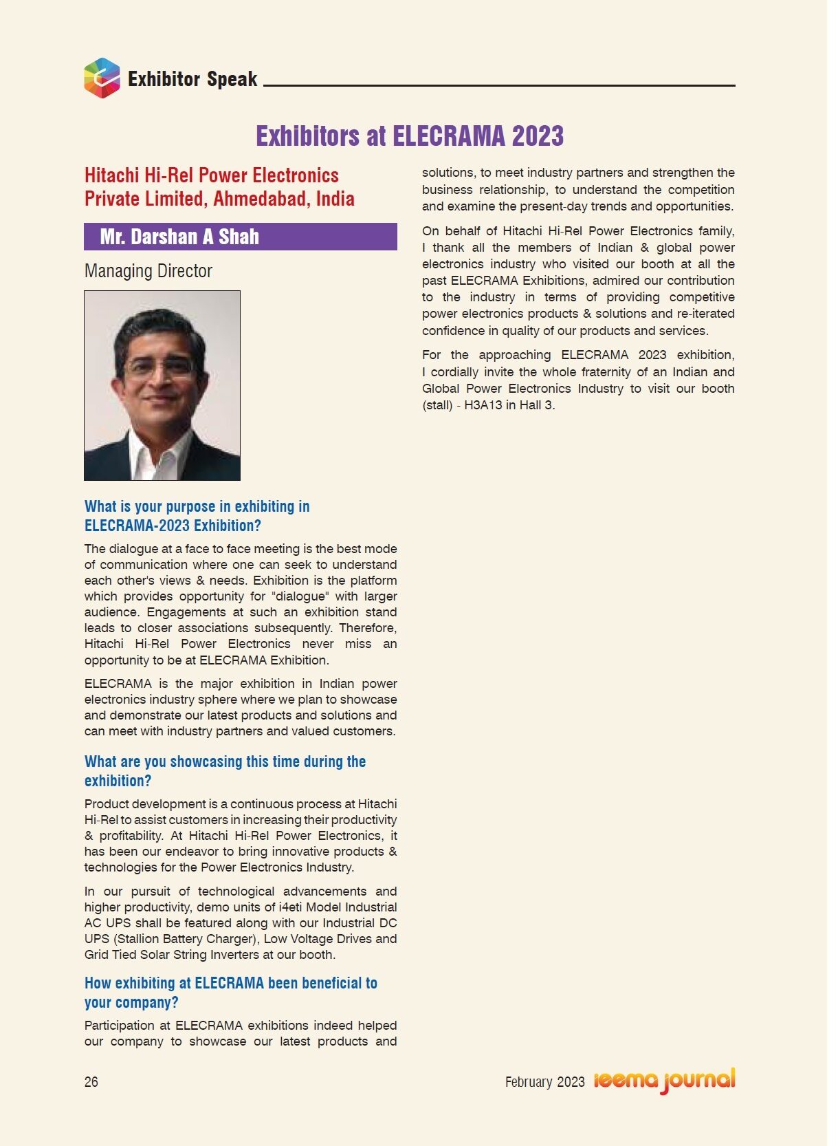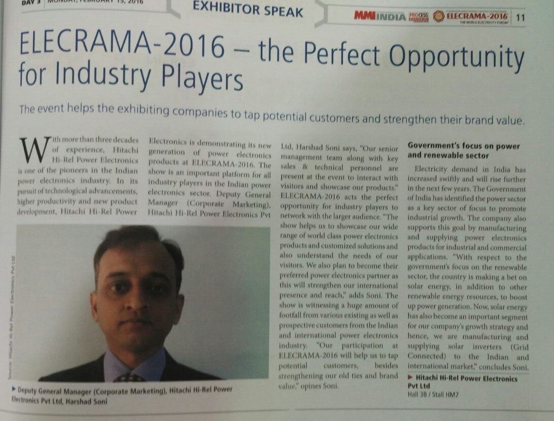 Hitachi Hi-Rel's participation at ELECRAMA 2023 Expo Coverage in Process & Plant Engineering Magazine
