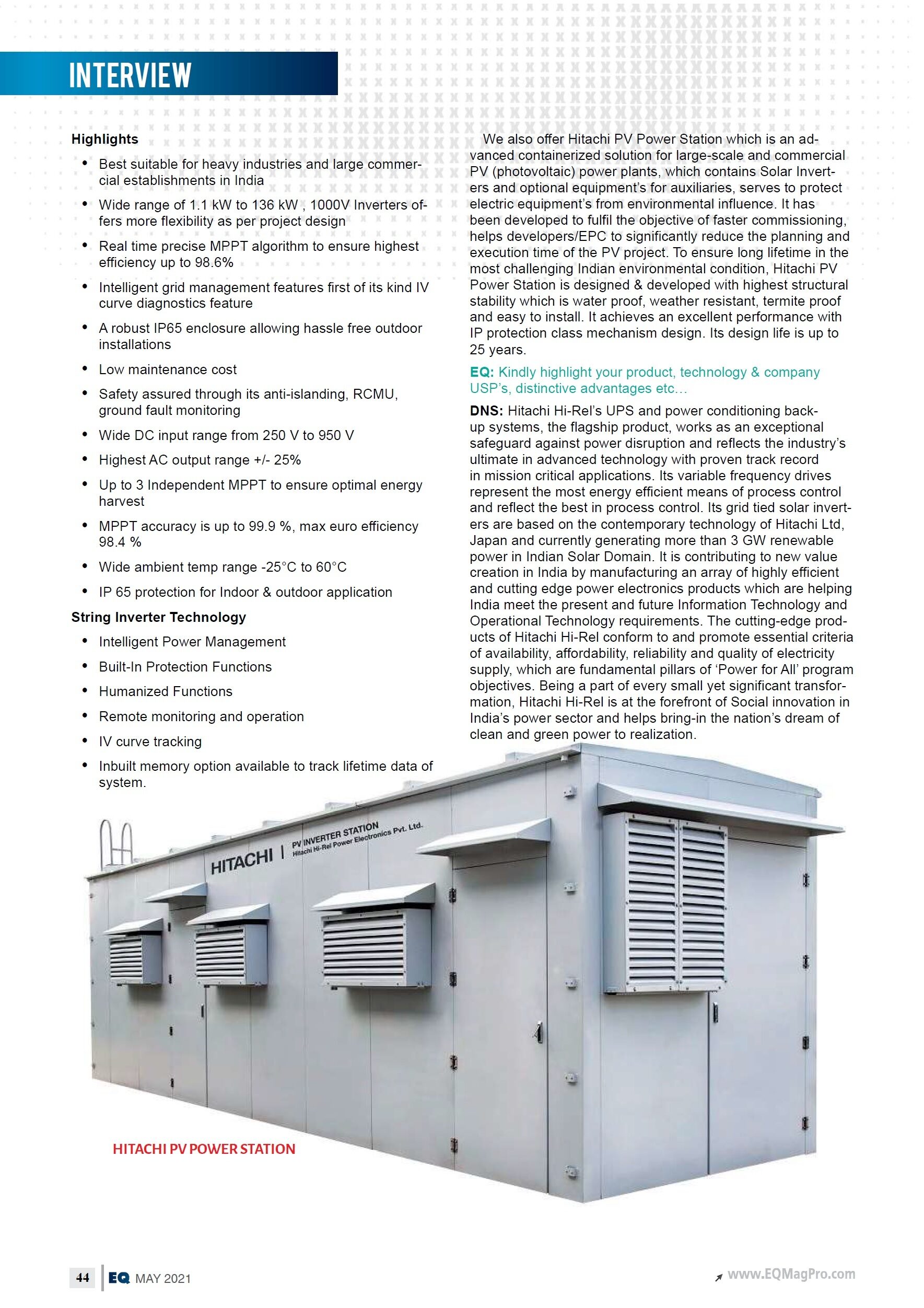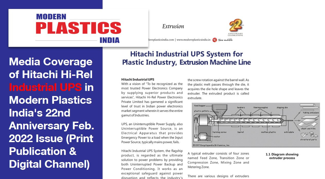 Media Coverage of Hitachi Hi-Rel Industrial UPS in Modern Plastics India's 22nd Anniversary Feb. 2022 Issue