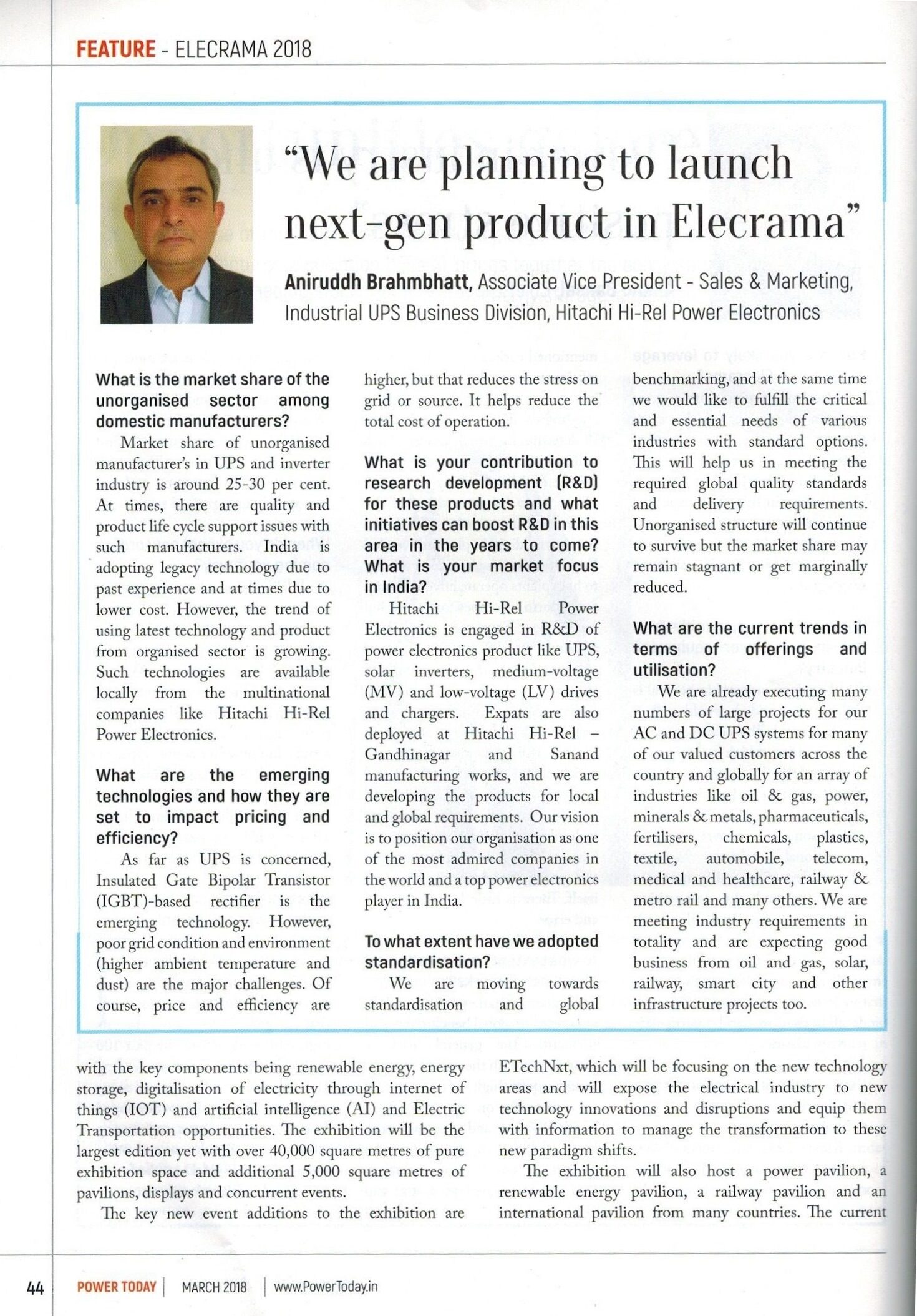 Interview of Head of Corporate Marketing in Show Daily of ELECRAMA 2018, 14th March 2018 (Day 5)