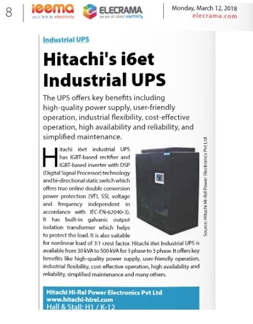 I6et Industrial UPS Product Coverage in Show Daily of ELECRAMA 2018, 12th March 2018 (Day 3)