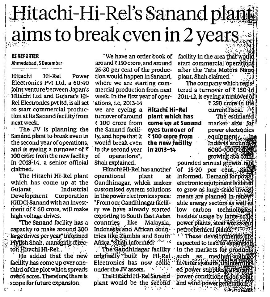 Sanand Plant Inauguration Coverage in Business Standard December 2012