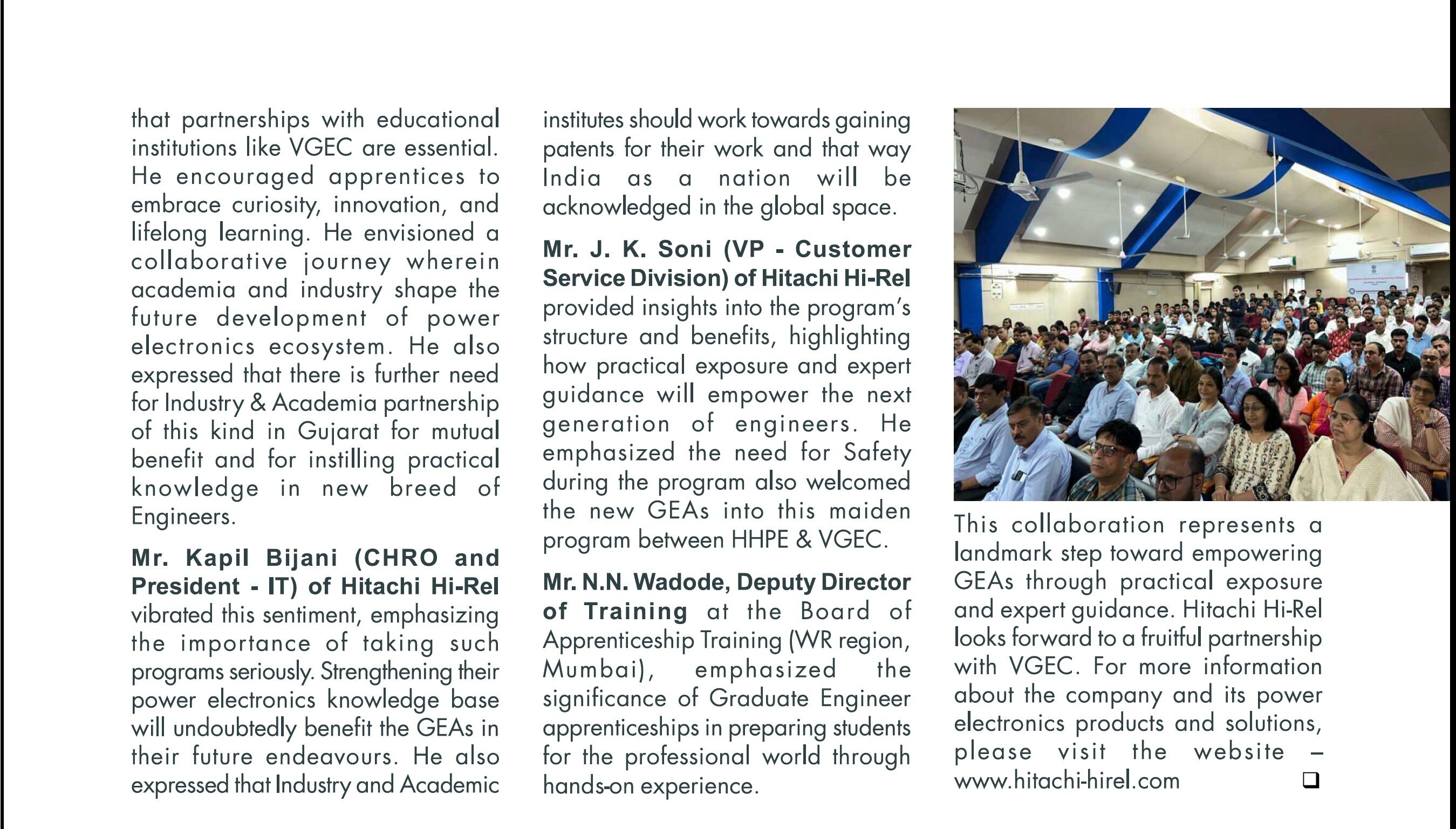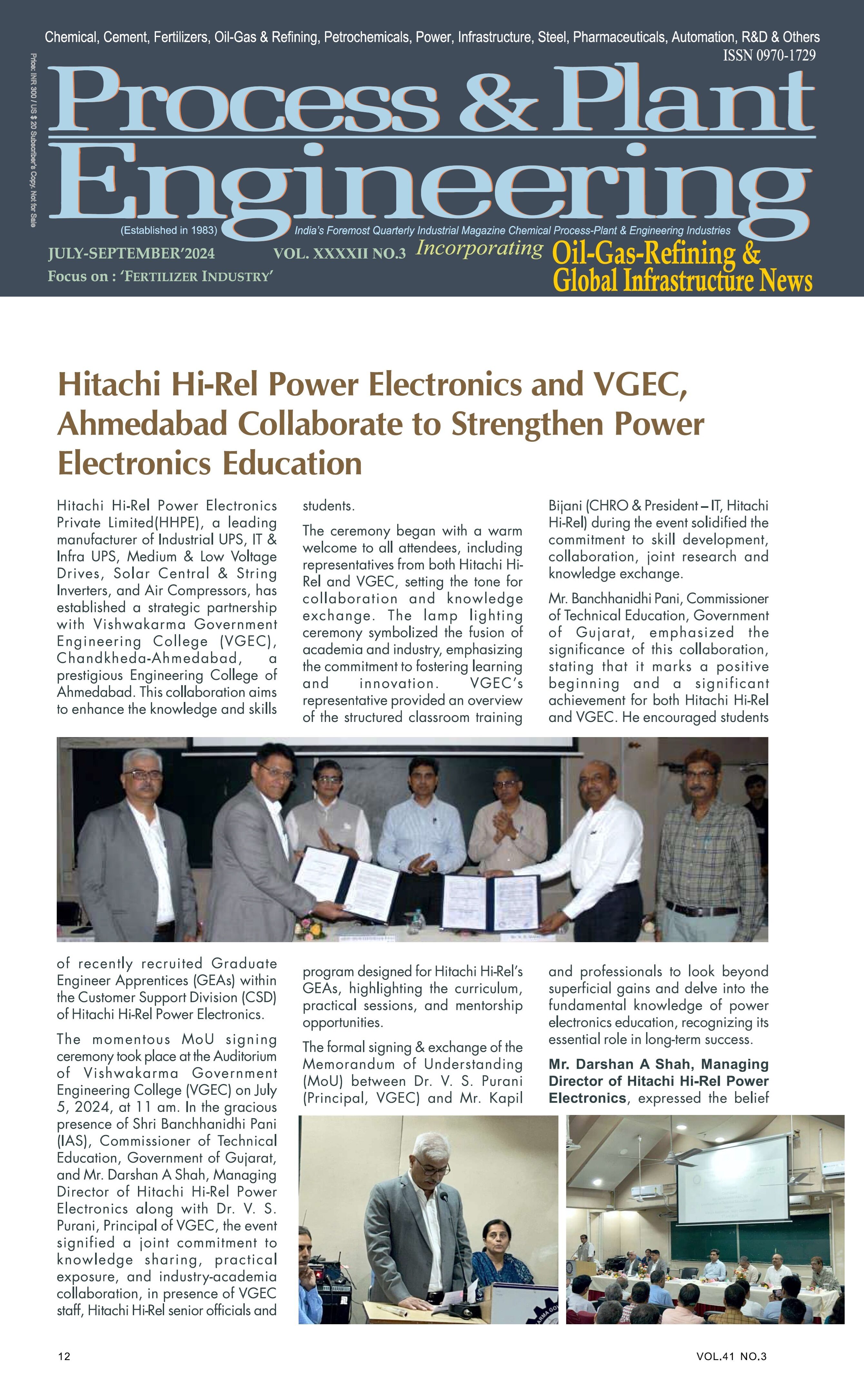 Hitachi Hi-Rel Power Electronics and VGEC, Ahmedabad Collaborate to Strengthen Power Electronics Education