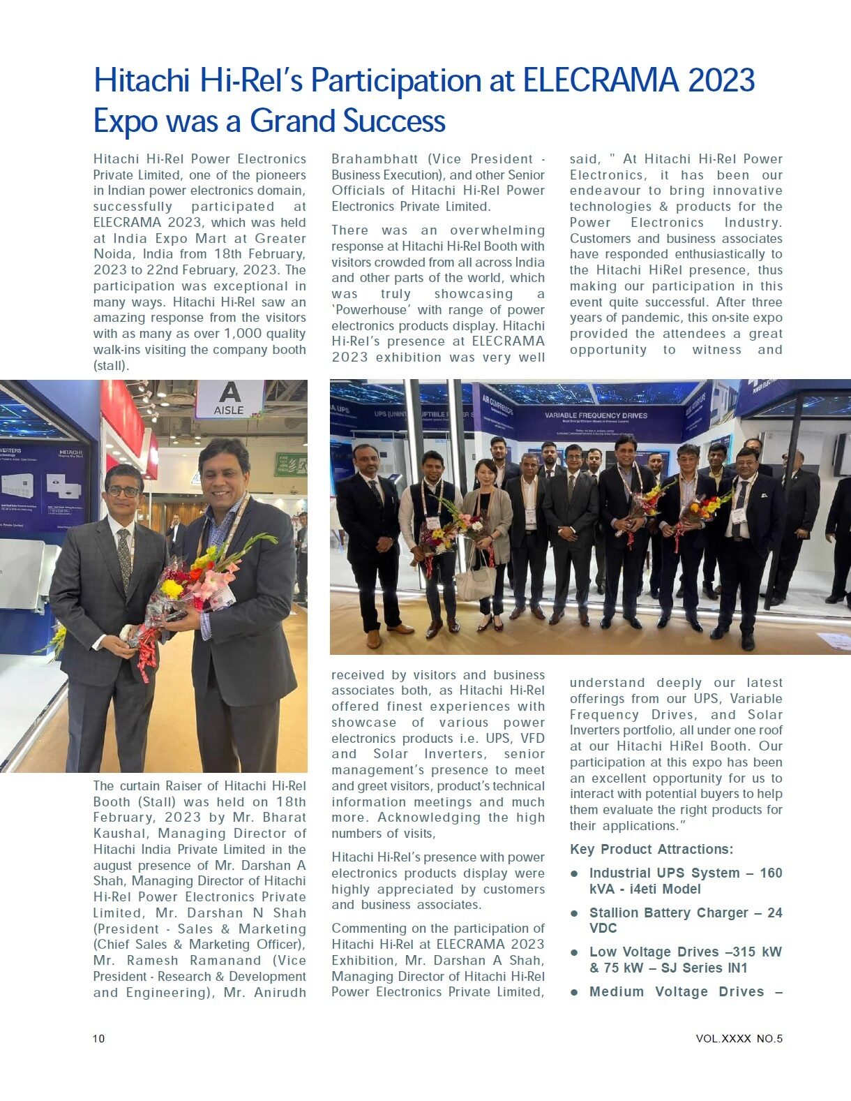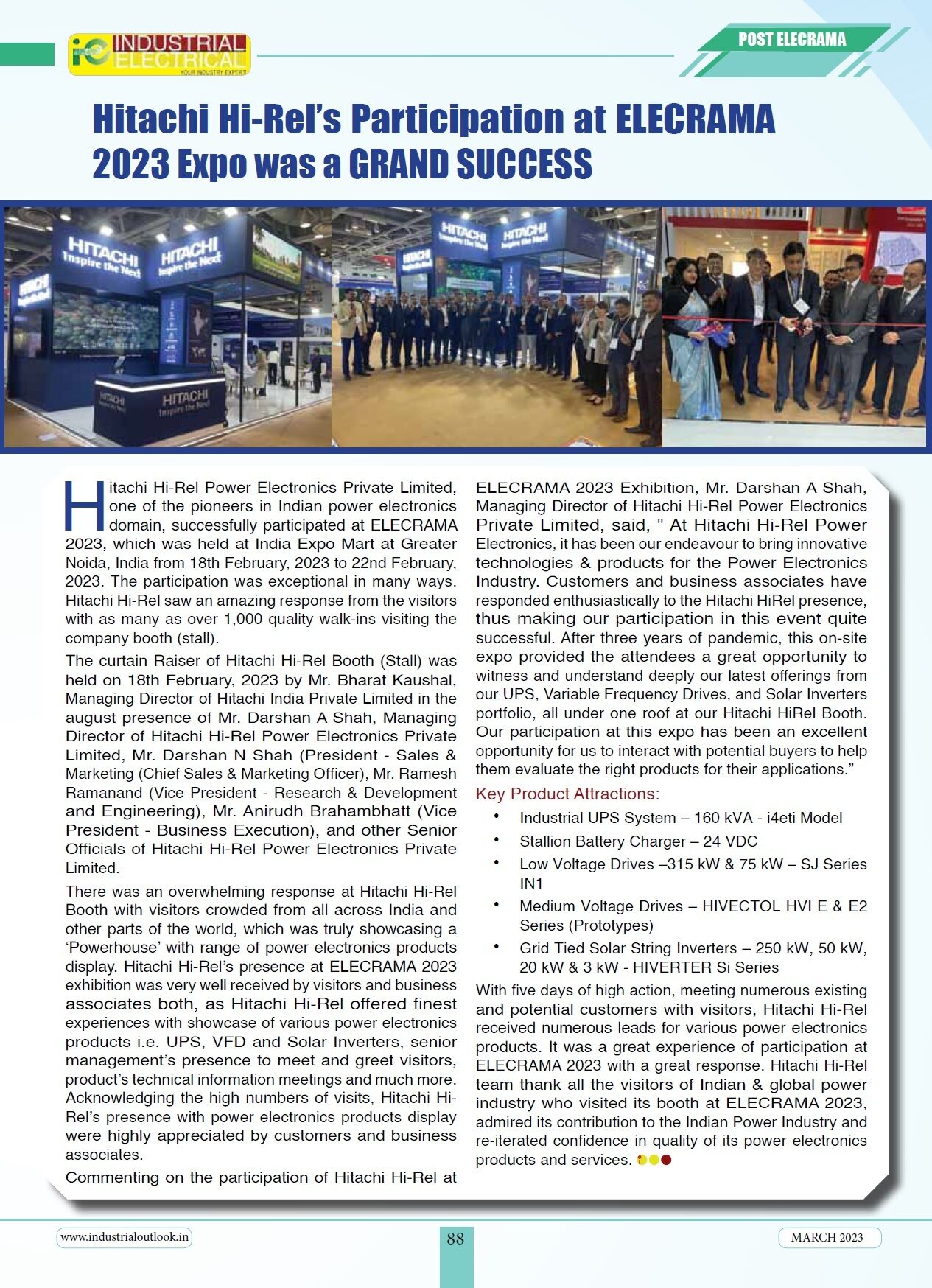 Hitachi Hi-Rel's participation at ELECRAMA 2023 Expo Coverage in Industrial Outlook Magazine